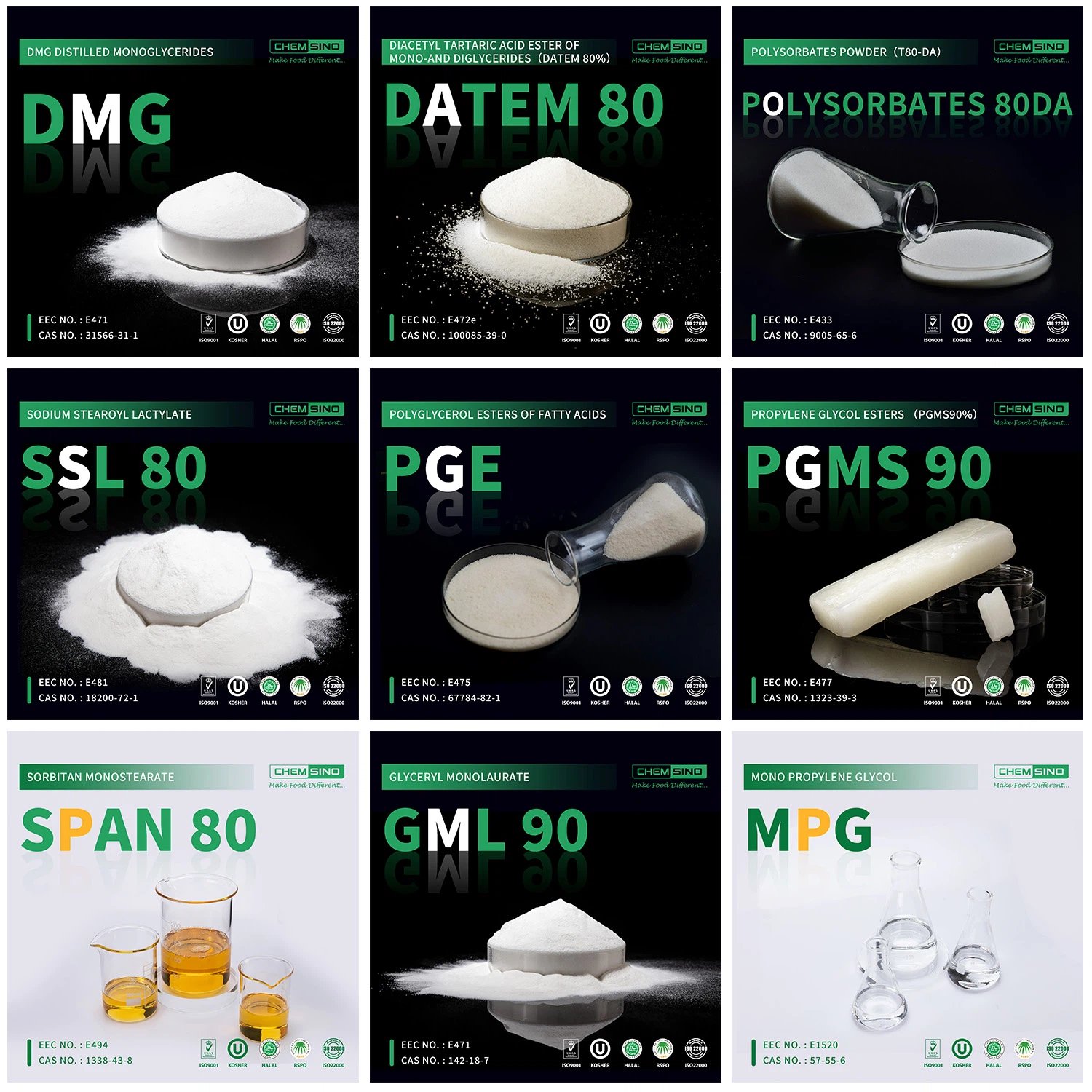Desde su creación en 2006, Henan Chemsino Industrial Co., Ltd. (Chemsino) ha seguido innovando y centrándose inquebrantablemente en los emulsionantes alimentarios. Ahora ha desarrollado más de 30 productos emulsionantes, incluidos monoglicéridos destilados (DMG), monoestearato de glicerilo (GMS), propilenglicol (PG), DATEM, SSL, PGE, PGMS, etc.
